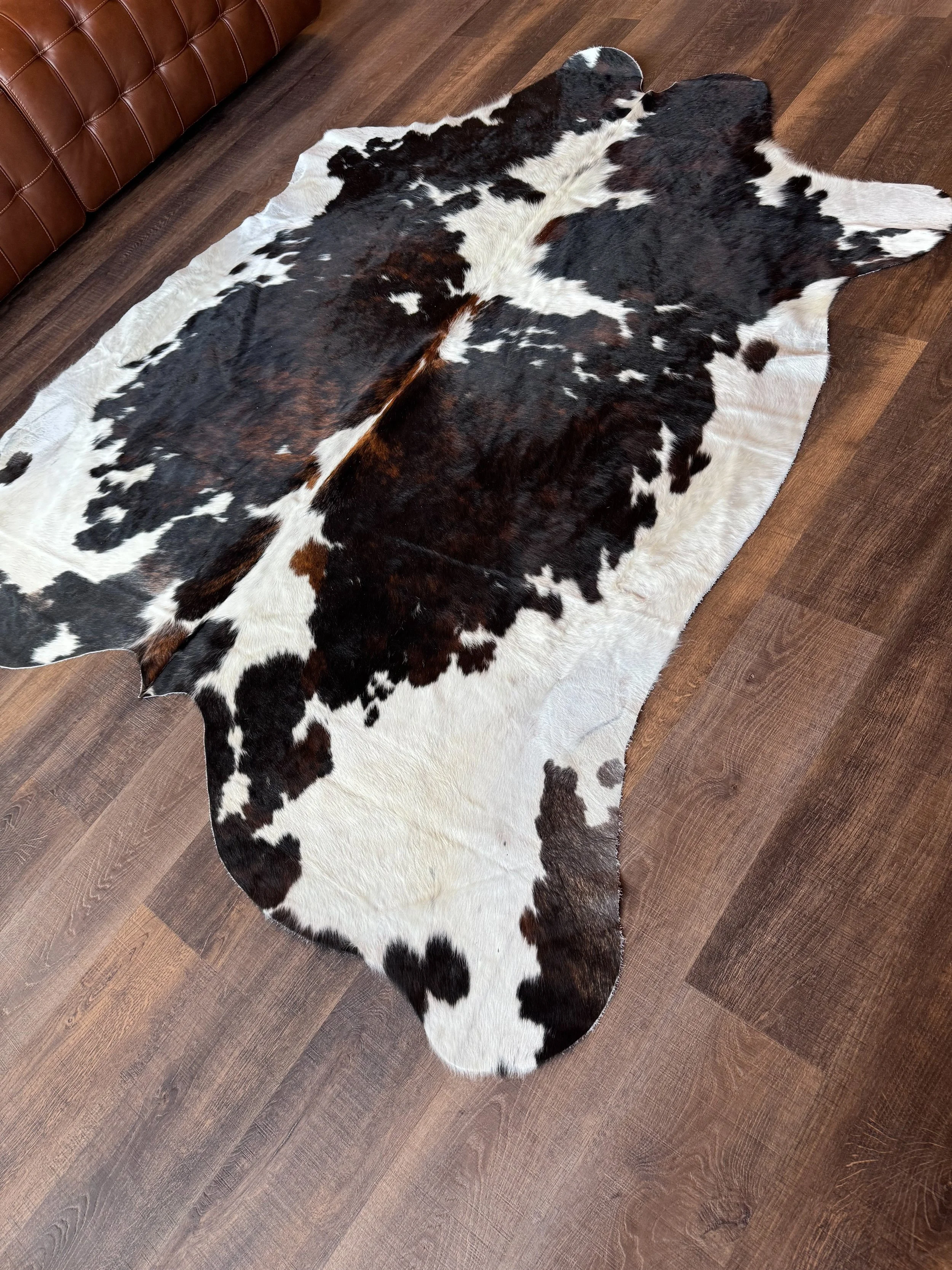 Cowhide Rugs & Stockings › Tri-Color Large Cowhide Rug Image 1 of 4 Image 2 of 4 Image 3 of 4 Image 4 of 4 Tri-Color Large Cowhide Rug $275.00 Sold Out Widest points are 7’ x 6’7”. This is the EXACT rug you will receive! Top Quality Brazilian hide! Sold Out Added! Widest points are 7’ x 6’7”. This is the EXACT rug you will receive! Top Quality Brazilian hide! Red & White Speckle Branded Large Cowhide Rug $275.00 Add To Cart Grey Exotic X-Large Cowhide Rug $275.00 Add To Cart Tri- Color Large Cowhide Rug Sale Price: $215.00 Original Price: $265.00 Add To Cart Reviews Reviewer Name Review Date Star Rating Description Posted on Etsy Product Show More
