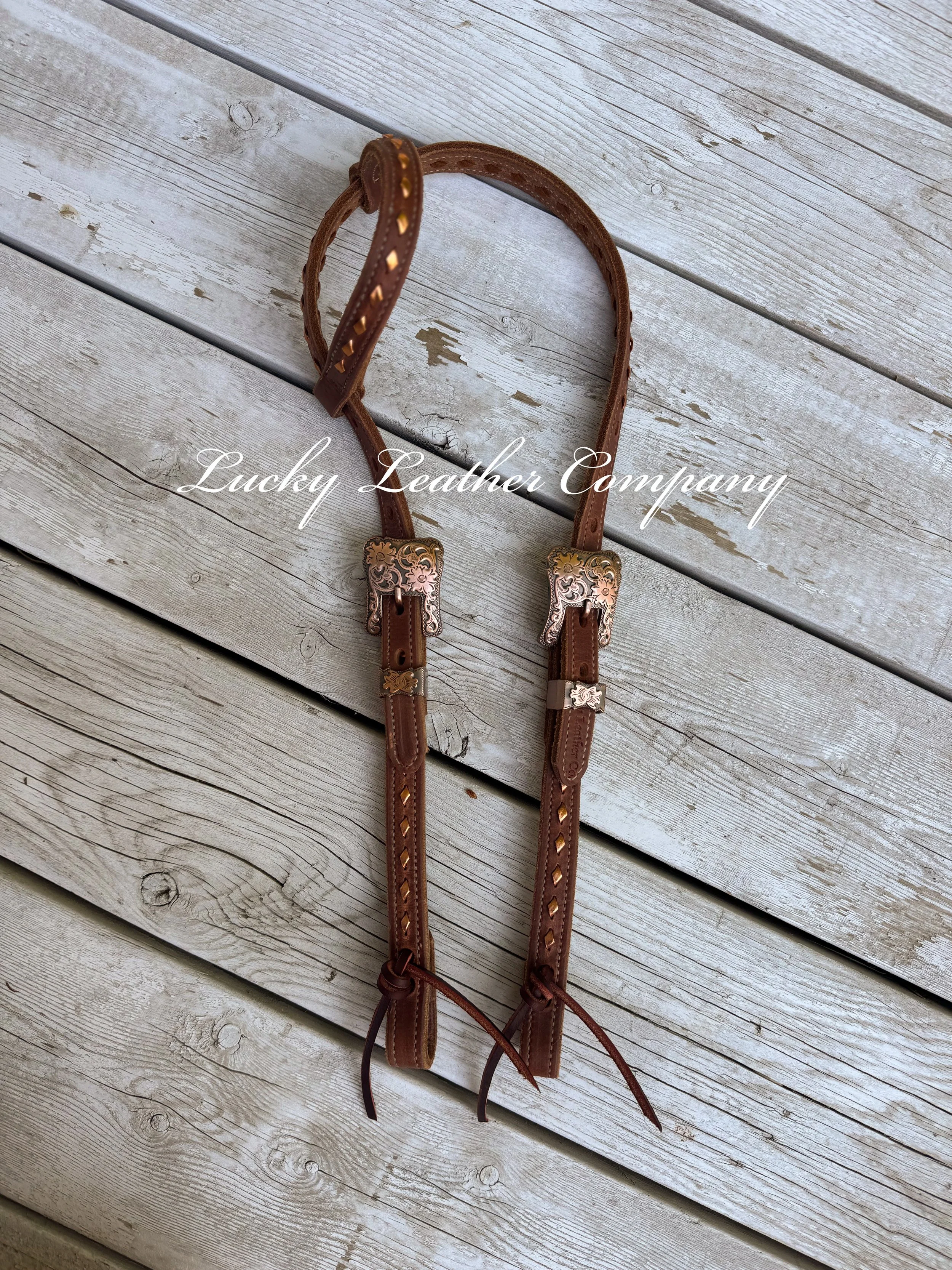 Working Headstalls & Sets › Butter Soft Chocolate Split Ear Headstall Image 1 of 2 Image 2 of 2 Butter Soft Chocolate Split Ear Headstall $62.00 3/4” wide leather. Adjustable from 34”-42”. If you need custom sizing please reach out we are happy to make a custom size! Buckle Color: Antique Copper (pictured) Antique Silver Quantity: Purchase Added! 3/4” wide leather. Adjustable from 34”-42”. If you need custom sizing please reach out we are happy to make a custom size! PNW Maroon Hybrid Muletape Halter $195.00 Add To Cart Turquoise & Cream Buckstitch Tack Set from $245.00 Style: Select Style Headstall Only Breast Collar Only Tack Set Add To Cart Medium Oil & Copper Headstall $130.00 Add To Cart Reviews Reviewer Name Review Date Star Rating Description Posted on Etsy Product Show More